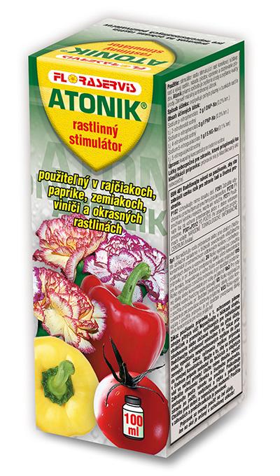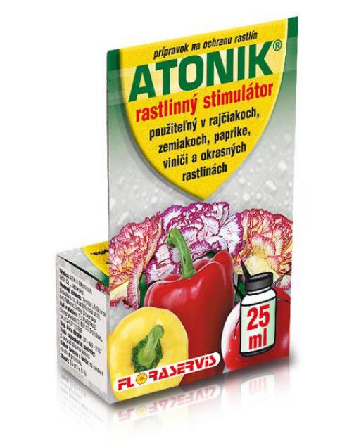 Značilnosti in delovanje ATONIK je rastlinski stimulator, katerega aktivne snovi so aromatične nitro spojine. Te nitro spojine so naravno prisotne v vsaki rastlini. Uporaba zdravila ATONIK poveča koncentracijo teh snovi v rastlinah, kar povzroči pospešitev citoplazmatskega pretoka v rastlinskih celicah. Ta učinek spodbuja hitrejšo sintezo vseh življenjsko pomembnih snovi (beljakovin, maščob, sladkorjev, encimov) za zdravo rast in razvoj rastlin. Metabolizem se pospeši in kemični procesi so popolnejši. Rastlinski obrambni sistem se hitreje odziva na različne dražljaje. Hitrejši metabolizem ustvarja večje potrebe po hranilih, zato je rastlina nagnjena k "iskanju" hranil. Oblikuje se bogatejši koreninski sistem, ki rastlini omogoča intenzivnejše sprejemanje hranil. Na splošno se po uporabi sredstva ATONIK poveča sposobnost rastline za sprejemanje hranil (mineralov) iz tal in zlasti s površine listov. Zato je koristno uporabljati ATONIK v TM s tekočimi foliarnimi gnojili, bogatimi z mikroelementi.