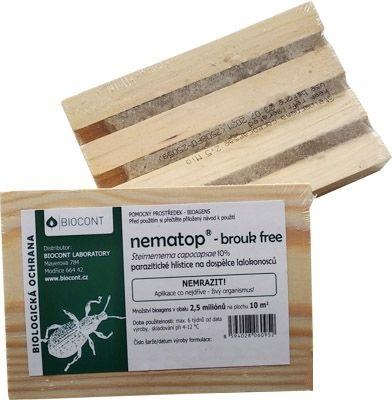 Nematope brez hroščev, nematode iz rodu Steinernema, v gelskem nosilcu, ki se namesti v leseno ploščo. Ciljna skupina so odrasli hroščki. Odrasli hroščki se čez dan skrijejo pod ploščo. Nematode prodrejo skozi telesne luknje v odrasle hrošče, ki po nekaj dneh poginejo. Obdobje uporabe od maja do septembra.
