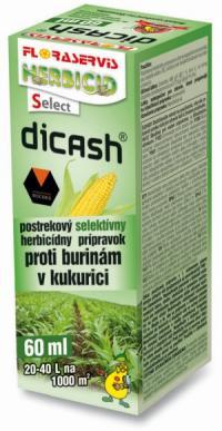 - Dicash je sistemični herbicid, ki se uporablja za postemergentno (po vzniku koruze) zatiranje (izkoreninjenje) dvokaličnatih plevelov v koruzi.