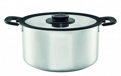 Visok lonec s praktično skalo je izdelan iz zelo vzdržljivega nerjavečega jekla 18/10, zato se njegova površina hitro segreje. Zunanja površina lonca je gladka, kar zagotavlja maksimalno zaščito kuhalne plošče pred praskami. Lonec je enostaven za shranjevanje skupaj z drugo posodo Functional Form, kar prihrani prostor za shranjevanje. Ročaj iz bakelita med kuhanjem ostane prijetno hladen in zagotavlja varen oprijem. Primeren za vse vrste kuhalnih plošč. Ploski pokrov iz kaljenega stekla s silikonskim obodom ponuja dve možnosti za nalivanje vode in enostaven pregled nad pripravljeno hrano ter nadzor pare in vrenja.