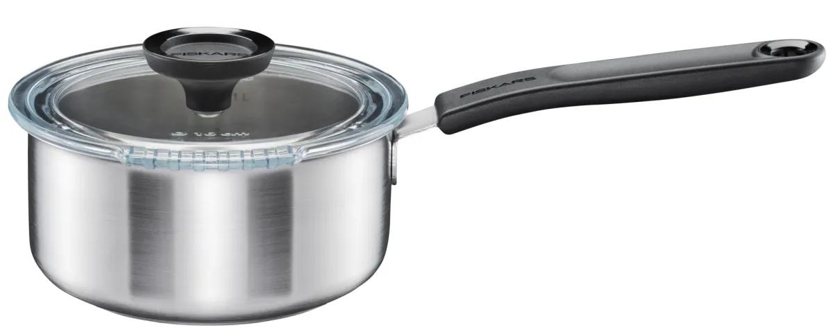Vrtno orodje » Kuhinjski pripomočki FISKARS » Fiskars Ponev s pokrovom, 1,5 L / 16 cm, iz nerjavečega jekla 1072315