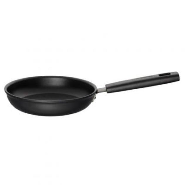 Aluminijasta ponev Fiskars za pripravo zahtevne hrane. Neprijemljive lastnosti, površina Hardtec Superior, varnostni ročaj iz bakelita, debelejše energijsko varčno dno, sodoben črn dizajn.