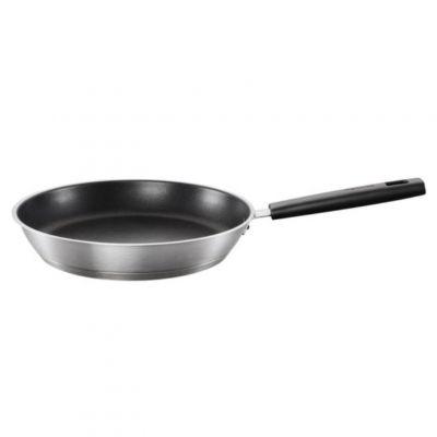 Ponev iz nerjavečega jekla Fiskars 28 cm ima odlične lastnosti, ki se ne prijemljejo, vključno z debelim trislojnim dnom, ki enakomerno porazdeli toploto in tako prihrani energijo. Ima bakelitni ročaj, ki zagotavlja, da ostane vedno hladna.