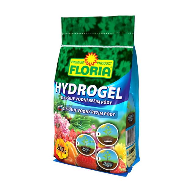 FLORIA Hydrogel: je koncentrat v prahu, ki v vodnem okolju tvori stabilen gel. Delci hidrogela vežejo 250-krat več vode in po prevleki oskrbujejo korenine rastlin z vodo. S tem se zmanjšajo izgube med presajanjem ali med prevozom in skladiščenjem rastlin. Ko so rastline presajene v tla, Hydrogel zagotavlja boljši stik med koreninami rastlin in tlemi.