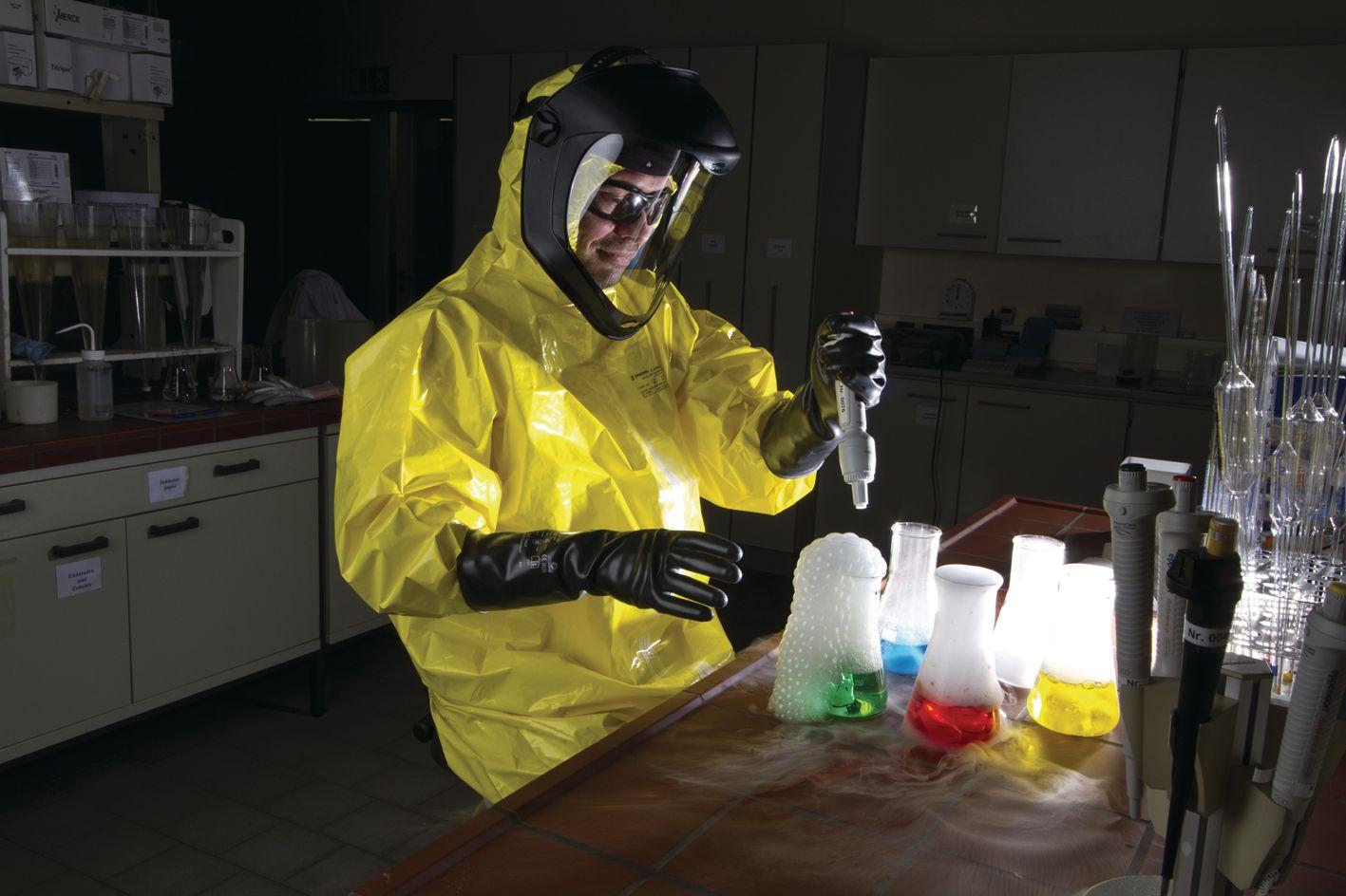 Kemično izjemno odporne rokavice iz butila v prahu, primerne za stik z izjemno nevarnimi kemikalijami.