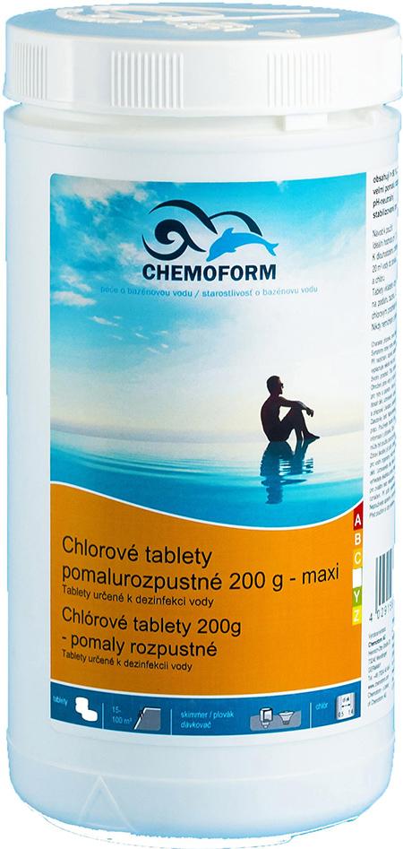Klorove tablete Maxi so počasi raztapljajoče se 200 g klorove tablete, namenjene dezinfekciji vode v bazenih.