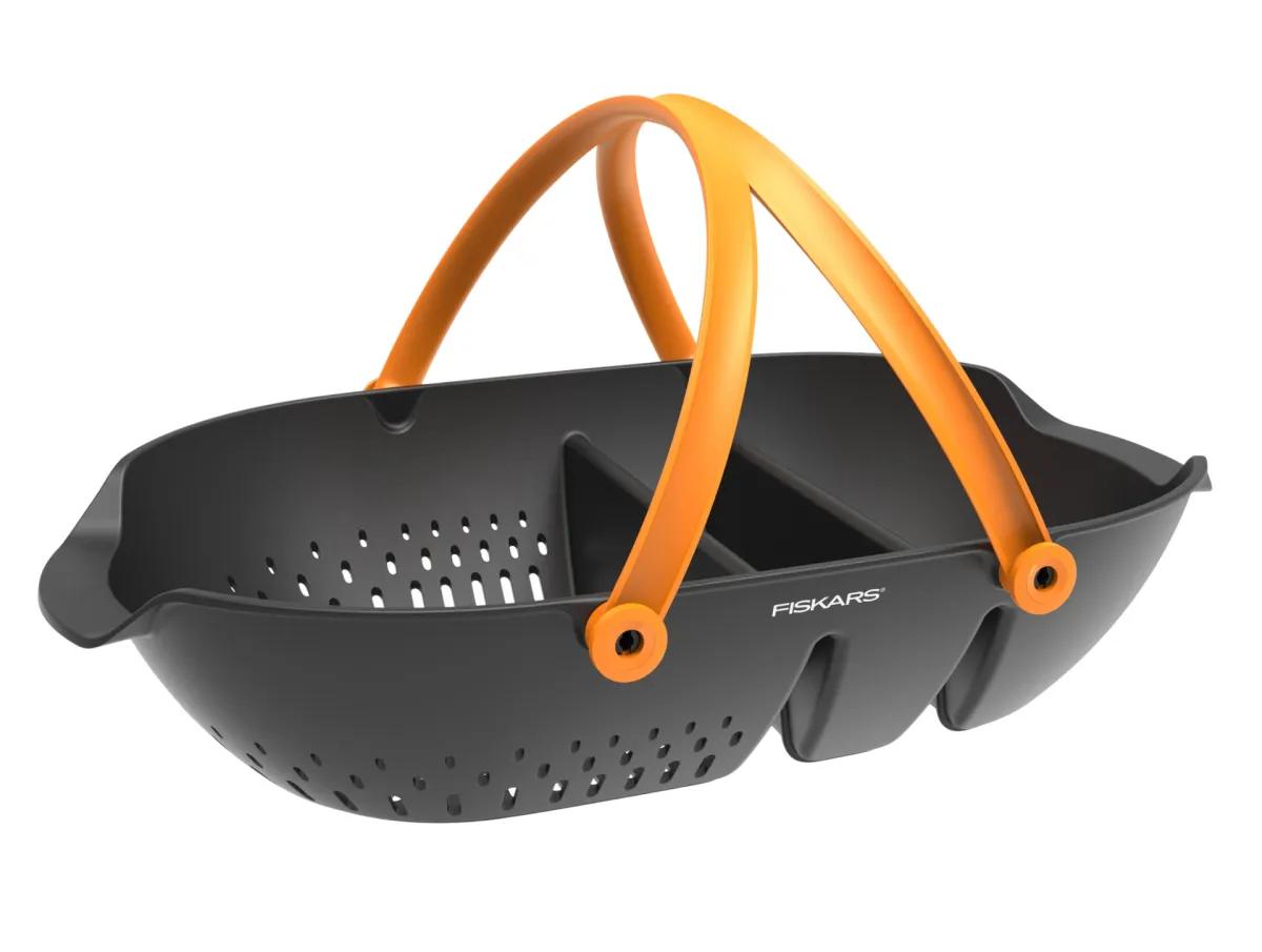 Košara Fiskars Plus Garden Košara za pobiranje je idealna za pobiranje, prevoz in čiščenje pridelka ter vrtnarskih orodij. Stran s cedilom ima odtočne odprtine za pranje pravkar pobranih pridelkov, medtem ko se zaprta stran lahko uporablja za namakanje ali prevoz čistih pridelkov ali orodij. Ergonomski stranski ročaji so idealni za nošenje z obema rokama, medtem ko so zložljivi ročaji blokirani za udobno uporabo z eno roko. Izdelani so iz trpežne plastike.