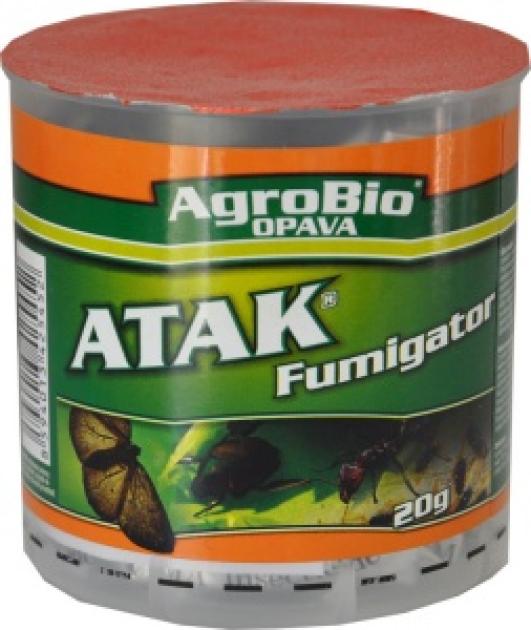 ATAK fumigátor je nová metóda ničenia hmyzu. Tento prípravok umožňuje úplne zničenie hmyzu rozptýlením suchého dymu, ktorý sa rýchlo rozširuje v ošetrovaných priestoroch. Veľmi jemné čiastočky dymu preniknú do každej škáry a praskliny a ničí tak aj dobre schovaný hmyz bez nebezpečenstva požiaru alebo výbuchu. Táto dymovnica má oneskorené rozptýlenie aktívnej zložky. Dym sa začne uvoľňovať niekoľko sekúnd po aktivácii Fumigátora vodou. Vďaka tomu je použitie prípravku veľmi bezpečné, pretože umožňuje osobe vykonávajúcej fumigáciu nedostať sa do styku s dymom. Účinnosť je rýchla a úplná; uvoľnený dym nezanecháva na povrchu škvrny ani zvyšky. Môže sa používať na ošetrenie miestností, kde sú uložené citlivé predmety (knihy, ...). Dym nezanecháva škvrny ani na stenách, ošatenie, textíliách apod.