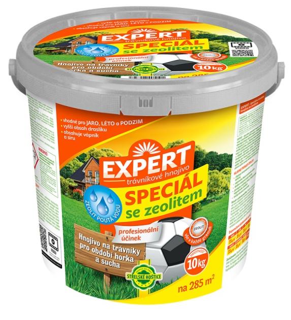 Posebno gnojilo za trato Expert s zeolitom je granulirano večkomponentno gnojilo NPK s kalcijem in žveplom, ki vsebuje tudi fino mleto naravno kamnino ZEOLIT (delež zeolita v gnojilu je 27 %). Sestava gnojila oskrbuje travnike z vsemi potrebnimi osnovnimi hranili, prisotnost zeolita v kombiniranemz večjo vsebnostjo kalija izboljša upravljanje z vodo v času pomanjkanja vlage. Zeolit zaradi svoje porozne strukture zelo dobro zadržuje vodo in tako zagotavlja boljše pogoje za travinje v času suše. Kalij vpliva na vodni režim v rastlinah, krepi rastlinska tkiva in tako med drugim povečuje odpornost rastlin proti suši.