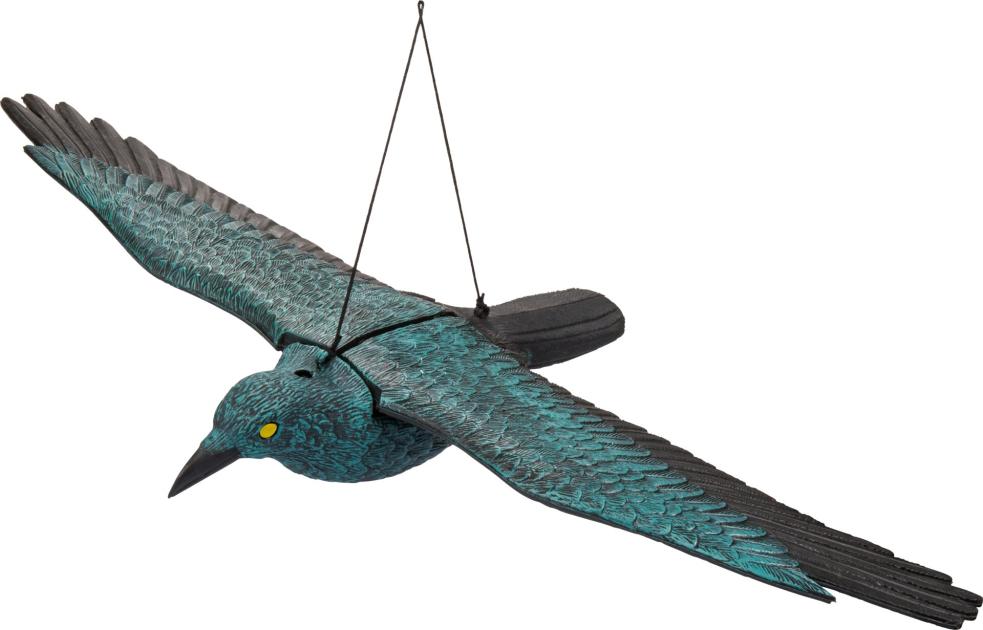 Realistično oblikovano strašilo za ptice v obliki vrane učinkovito ščiti vrt pred poškodbami. Narejen je iz trpežne plastike in ga je enostavno namestiti na različna mesta.