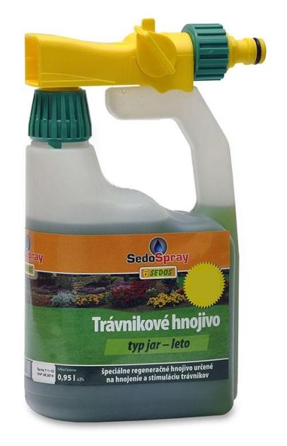 posebno regenerativno gnojilo, namenjeno gnojenju in spodbujanju trate.sedoSpray - tip trate pomlad-poletje je visoko koncentrirano kombinirano gnojilo v obliki raztopine z uravnoteženimm zastopanostjo vseh potrebnih rastlinskih hranil za popolno prehrano trate.