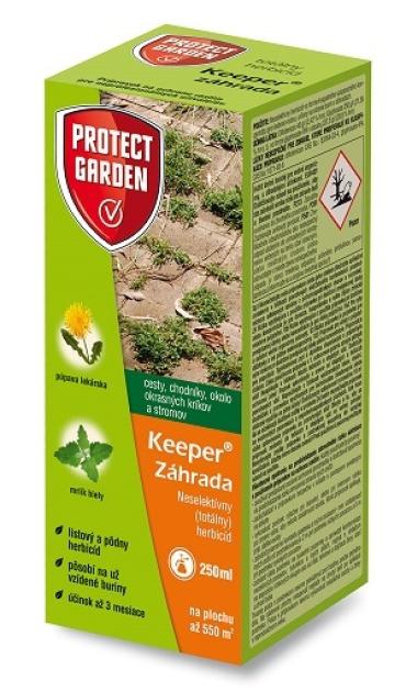 Neselektívny (totálny) herbicíd vo forme kvapalného suspenzného koncentrátu pre riedenie vodou, určený na ničenie burín v záhradách. Keeper Záhrada je neselektívny (totálny) herbicíd, ktorý pôsobí na už vzídené buriny a ich korene a tiež bráni vzchádzaniu semien burín. Zabezpečuje ochranu proti jednoročným a viacročným burinám ako sú trávy, pichliače, mrlíky, rumančeky, žihľavy, skorocele, rebríčky a ďalšie. Vysoko prerastené buriny nemusia byť odstránené dokonale. Prvé účinky sú viditeľné po 7 dňoch a k úplnému uhynutiu dôjde do 28 dní. Pôsobí až po dobu 3 mesiacov. Používa sa na ošetrenie nespevnených plôch (cestičky, chodníky a pod.) s výskytom nežiadúcej vegetácie a okolo okrasných kríkov a stromčekov. Nie je určený na ošetrenie nepriepustných povrchov (betón, dlažba, asfalt), kde by došlo k stekaniu prípravku.