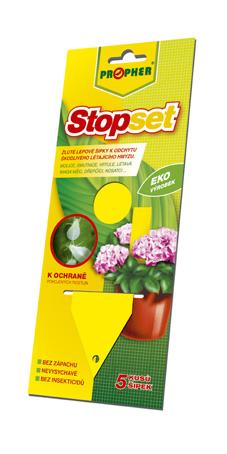 STOPSET RUMENO lepilo se uporablja za lovljenje škodljivih žuželk, kot so molji, žalostinke, bolhači, pleveli, letečina vrtovih, v sadovnjakih, rastlinjakih, stanovanjih, skladiščih sadja in zelenjave itd. Rumeni lepilni trakovi se uporabljajo za lovljenje češnjeve šiškarice, ki povzroča češnjevo gnilobo. Trakove namestite na sončno stran dreves v času, ko začnejo plodovi rumeneti, in sicer v količini 3-5, odvisno od velikosti drevesa. Plošče pritrdite z vrvico. Lepljive plošče zamenjajte z novimi takoj, ko je lepljiva stran popolnoma prekrita z ujetimi žuželkami ali prahom, običajno 6 tednov po obešanju.
