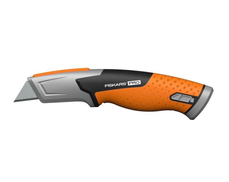 Varnostni nož Fiskars Pro je opremljen s samodejno izvlečenim rezilom za največjo varnost.