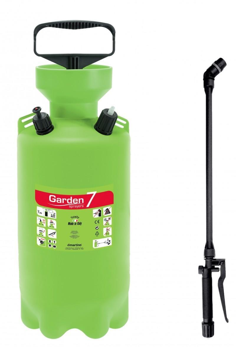 Visokokakovostni italijanski razpršilnik z zmogljivostjo 7 litrov za površino približno 500 m2. Opremljen je z varnostnim ventilom proti previsokemu tlaku. Zaradi širokega nabora dodatne opreme je idealen pomočnik za vrtove, zelenjavne vrtove, sadovnjake in rastlinjake.